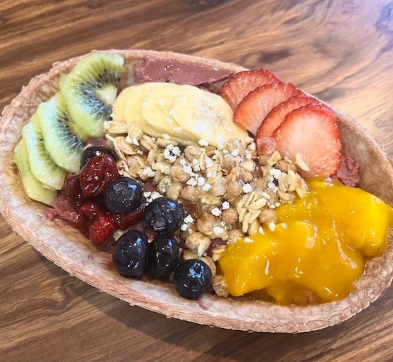 メニューは国産鶏とタイ米のアジアンチキンライス、ブラジルで生まれ世界中で親しまれているアサイーボウル、そしてポルトガルで生まれ香港やマカオ、日本でも人気のスイーツ、エッグタルト。多国籍、多文化の共生をテーマにメニューや素材を厳選し、各国から訪れるゲストにも喜んでもらえるようにと、味にもしっかりこだわっている。さらに、食べられる器に盛り付けるためゴミも少なく、カトラリーもプラスチック素材を使わないなど、エコにも配慮している。