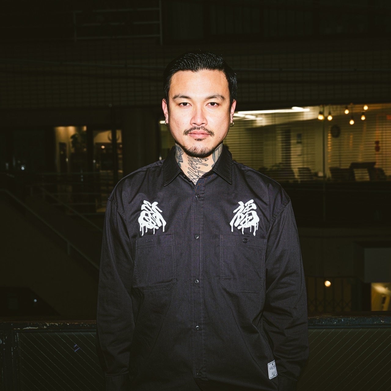 黒のスカジャンに際立つ色彩、MUSASHIの“風神雷神”が万博『世界のMUSASHI個展』に登場
