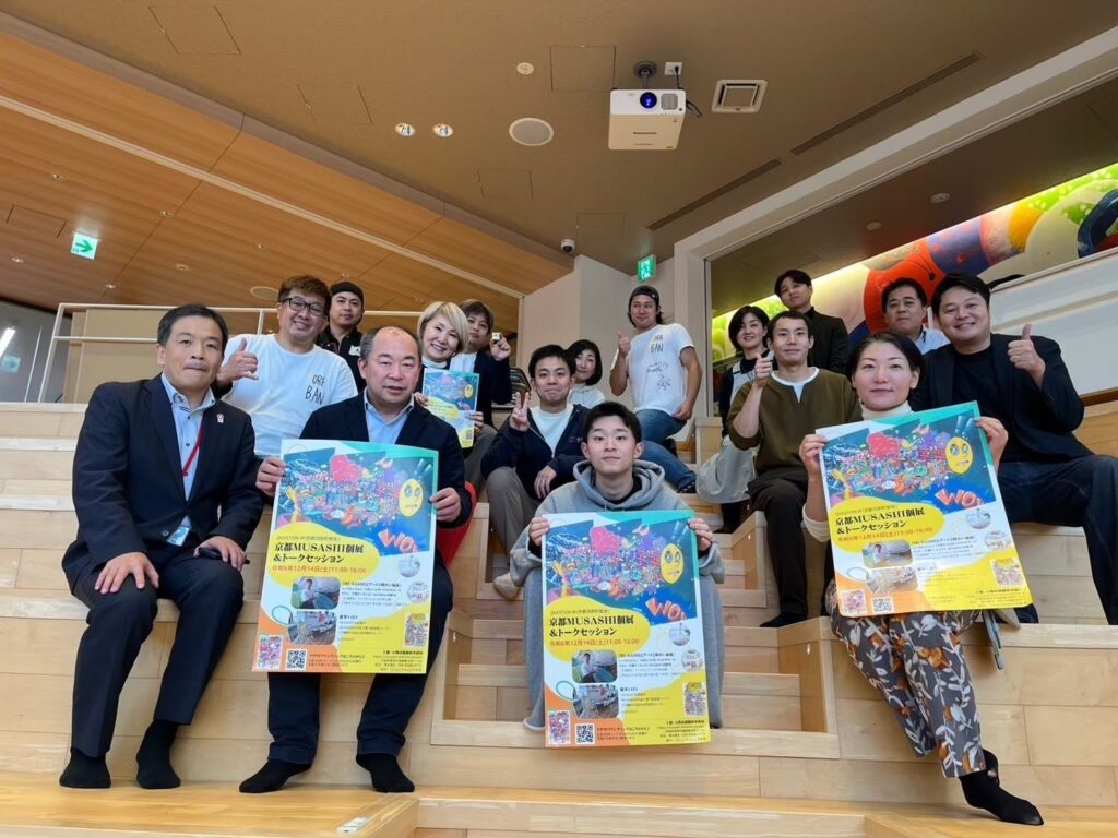 2024年12月14日に京都・河原町御池にあるコミュニティ・バンク京信のビル “ QUESTION(クエスチョン)”で開催したイベント『京都MUSASHI個展&トークセッション』で、初めて城貝さんがMUSASHIに対面した。その時の印象を「子どもたちがMUSASHIくんの下絵に色塗りをしているのを見たり、後輩パラアーティストに接するMUSASHIくんの様子を見ていて、彼はコミュニケーションは得意じゃないかもしれないけど、アートを通して人と繋がり、勇気を与える存在だと感じました。だからこそ、あれだけ多くの人を巻き込めるんだと思います」と語る。