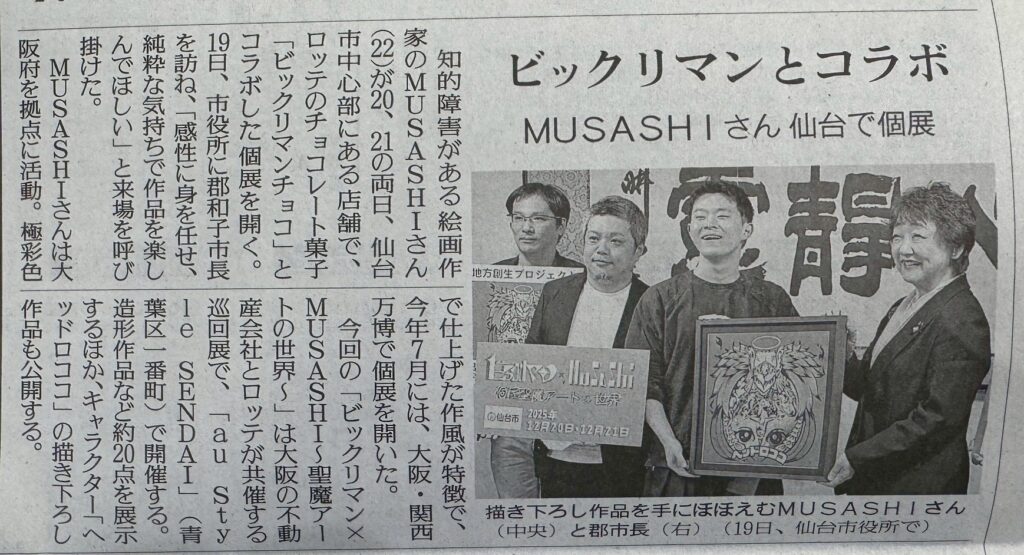 “Bikkuriman Artist MUSASHI Pays a Courtesy Visit to the Mayor of Sendai on December 19.”