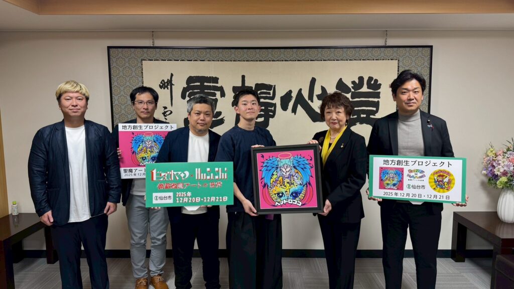 株式会社ロッテと株式会社石富プロパティーの共催で全国を巡回中の『ビックリマン×MUSASHI〜聖魔アートの世界〜』が、12月20日(土)・21日(日)に、宮城県・仙台にて開催される。さらに、そのイベント開催を目前にした12月19日に、MUSASHI本人が仙台市長に感謝の意を伝えるため、表敬に訪れることとなった。